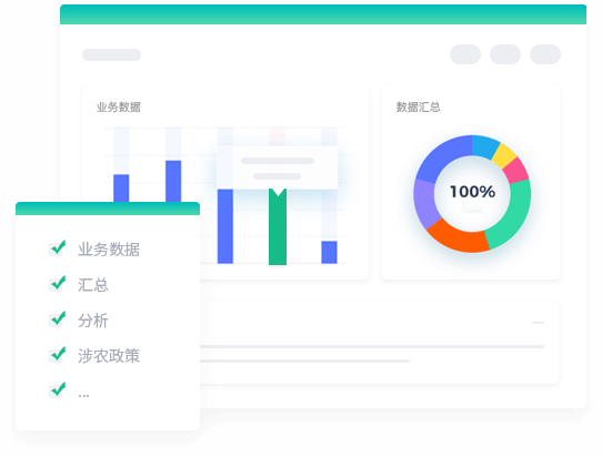 實現區域內農業各級政府部門業務數據的統計、匯總、分析、監管以及涉農政策、服務等發布功能。