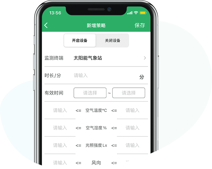 不想頻繁的手動操作APP,你可以通過睿農(nóng)寶APP提前設(shè)定好灌溉策略,可以實現(xiàn)定時定點的執(zhí)行灌溉操作,僅需設(shè)定一次操作策略,系統(tǒng)便會嚴(yán)格執(zhí)行。